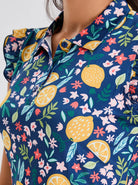 Upgrade your wardrobe with our Lemon Print Ruffle Sleeve Button-Packet Shirt, perfect for both athletics and everyday! Designed with quick-dry and moisture-wicking fabric, this shirt is a must-have for any active lifestyle. The stretch material and relaxed fit provide all-day comfort, while the floral pattern and ruffled sleeves add a touch of femininity to any outfit.