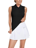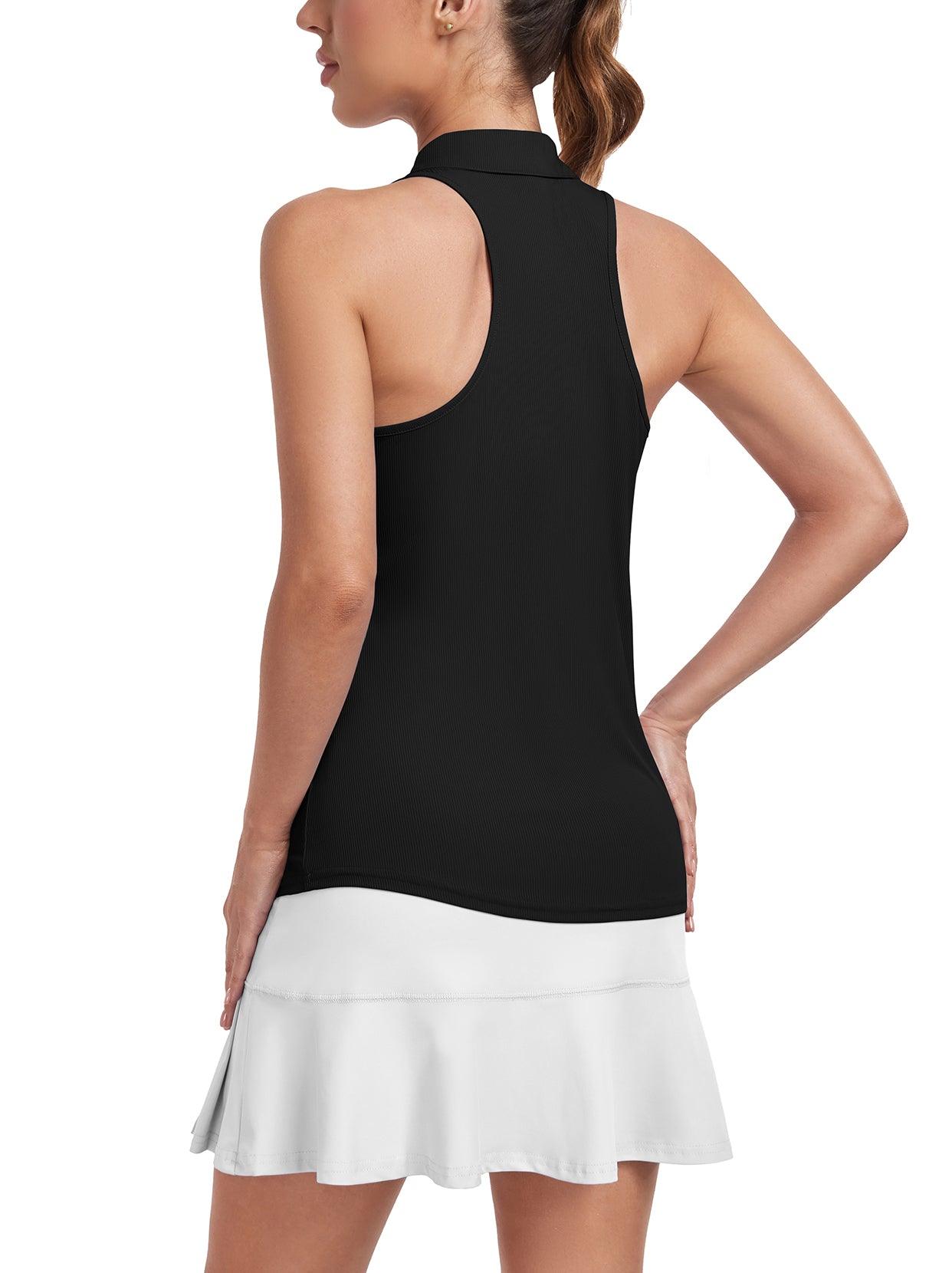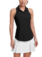 Make a bold statement in our timeless black polo. This versatile piece is a wardrobe essential for any active woman. The sleeveless design and slim fit offer a maximum range of motion, while the breathable, moisture-wicking fabric keeps you comfortable all day long. The button-down collar adds a touch of sophistication, making it perfect for both casual and athletic wear. Pair it with your favorite shorts or skirt for a chic and sporty look.