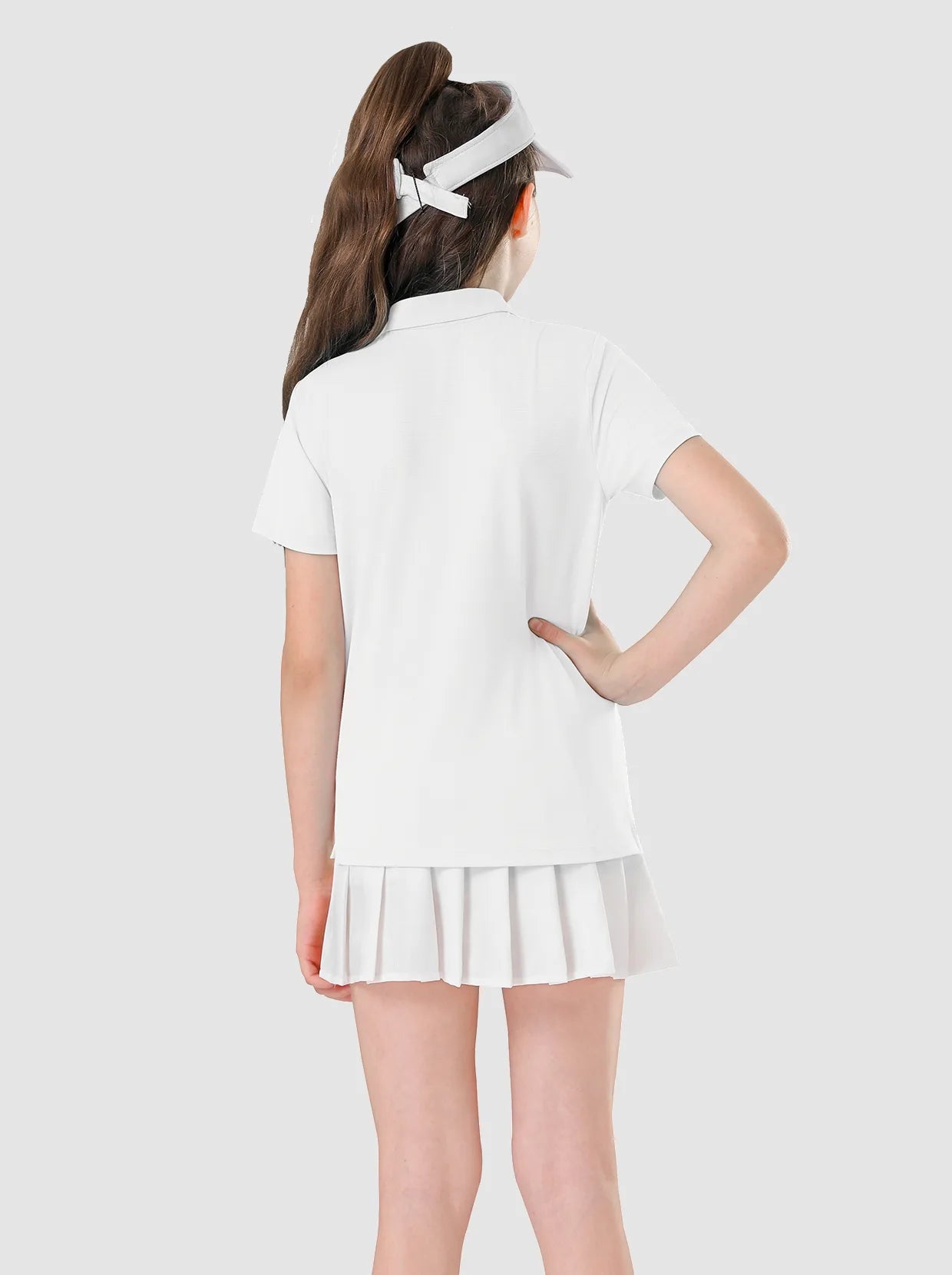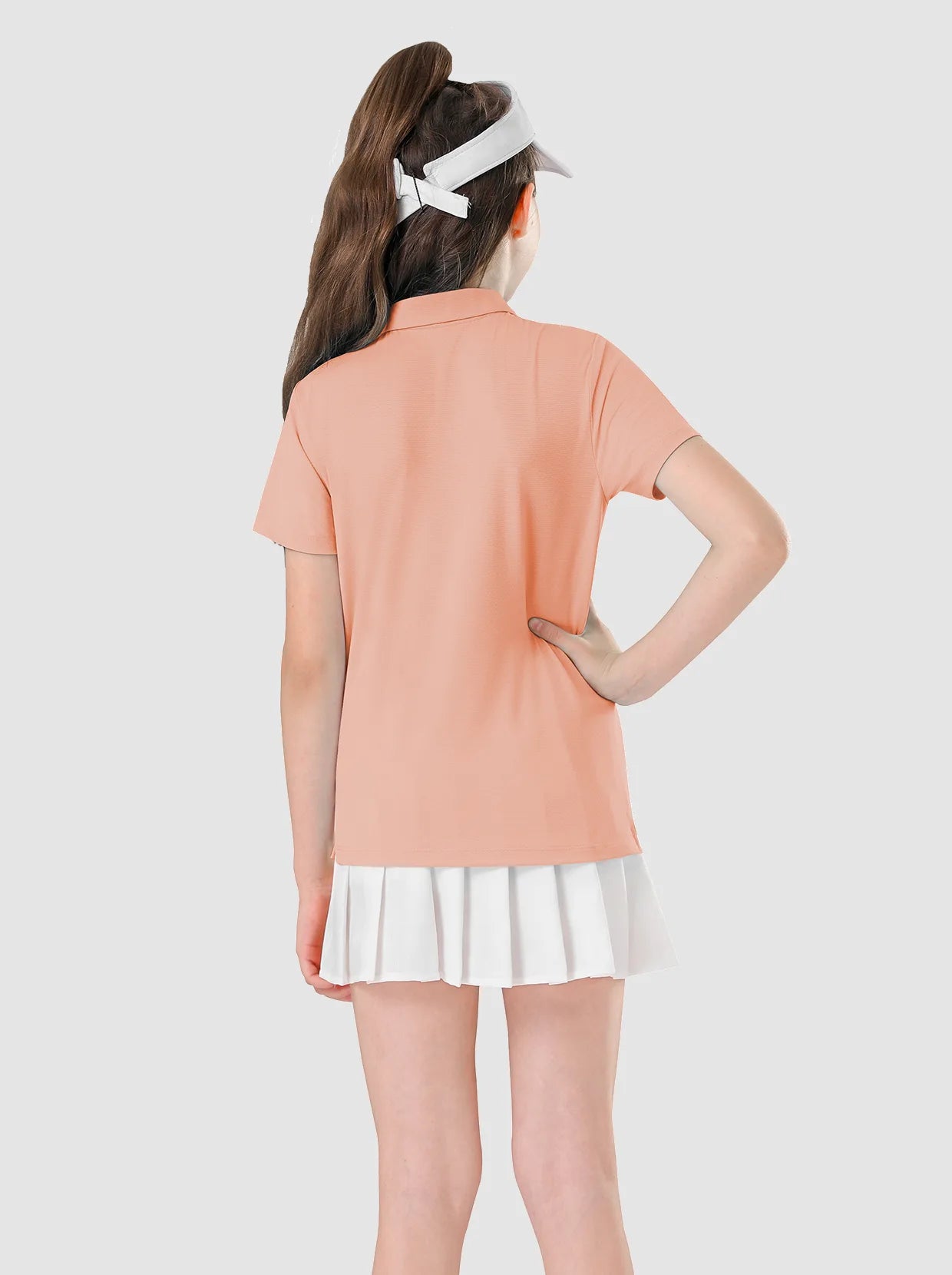 Solid color Button-Placket Short-sleeve Polo Shirt for Girls