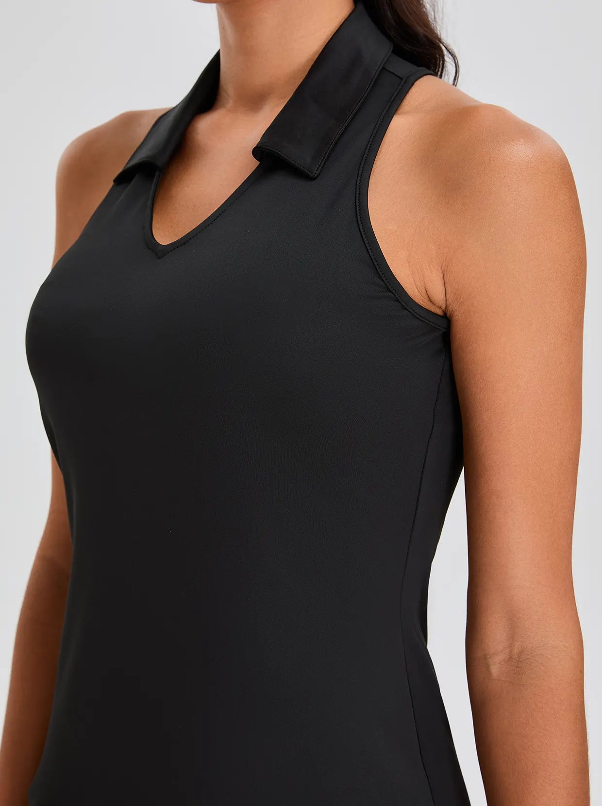 Solid Color 32" V-neck Racerback Athletic Dress with Shorts