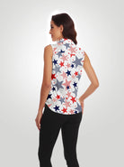 Star Print Button-Down Sleeveless Polo Shirts For Women
