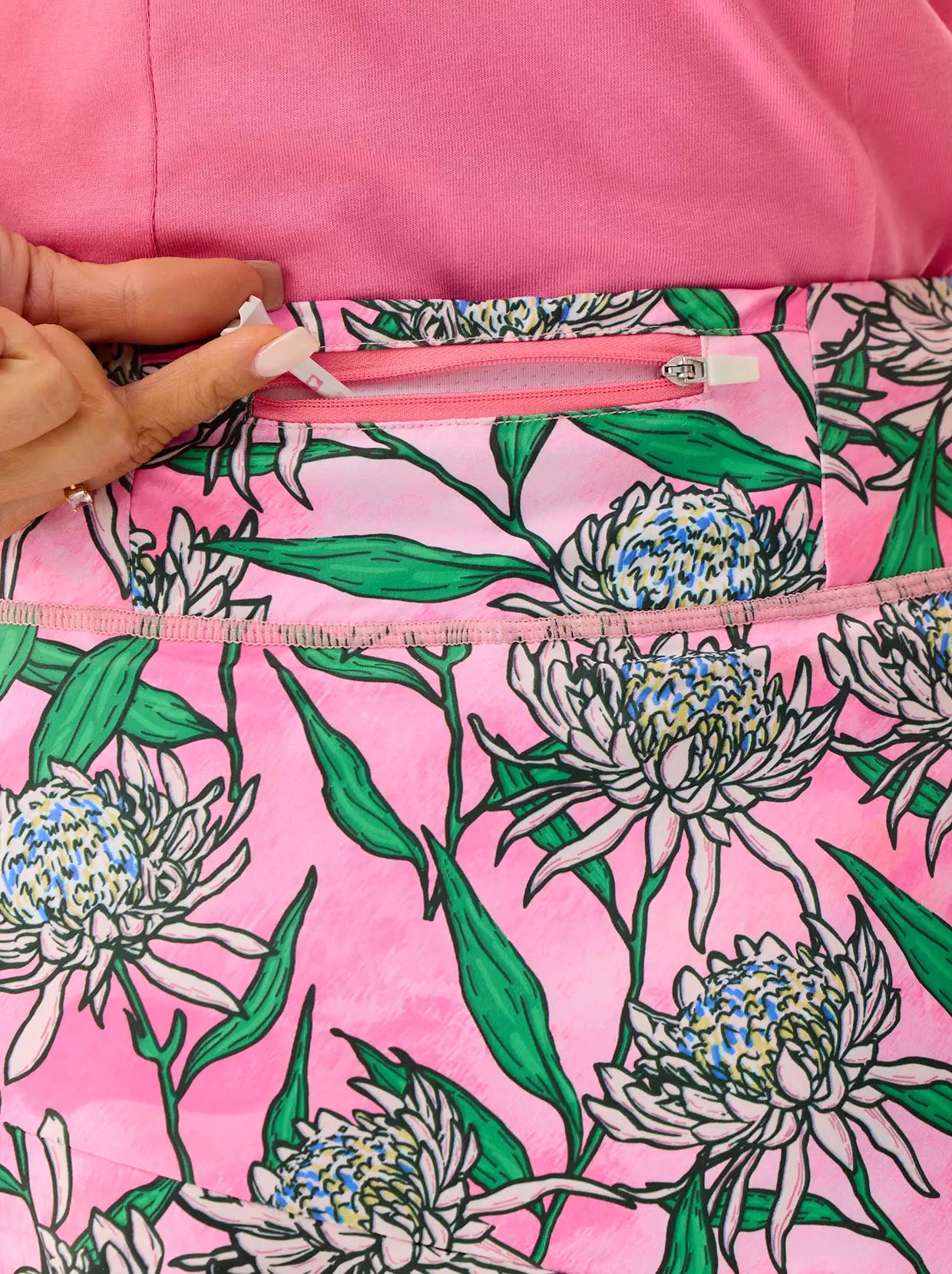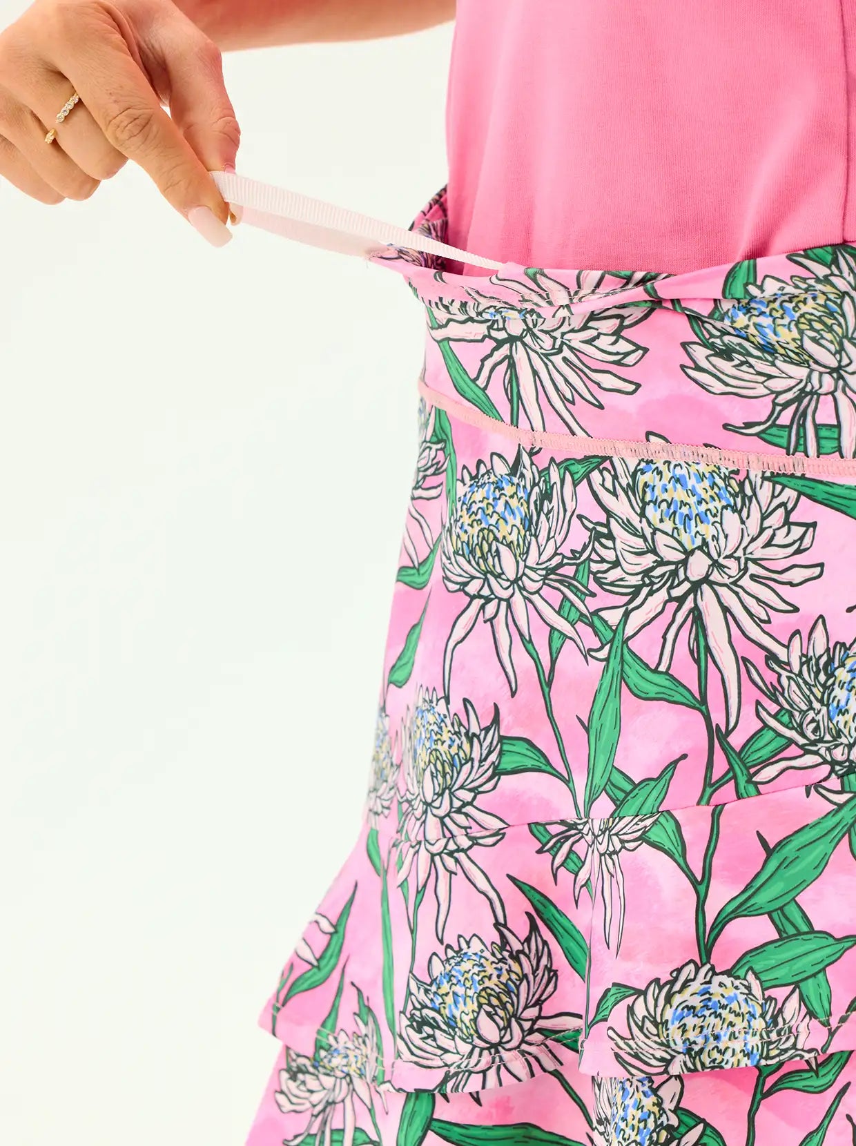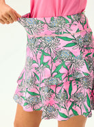 Tropical Flower 17" Ruffled Active Skorts with Shorts
