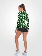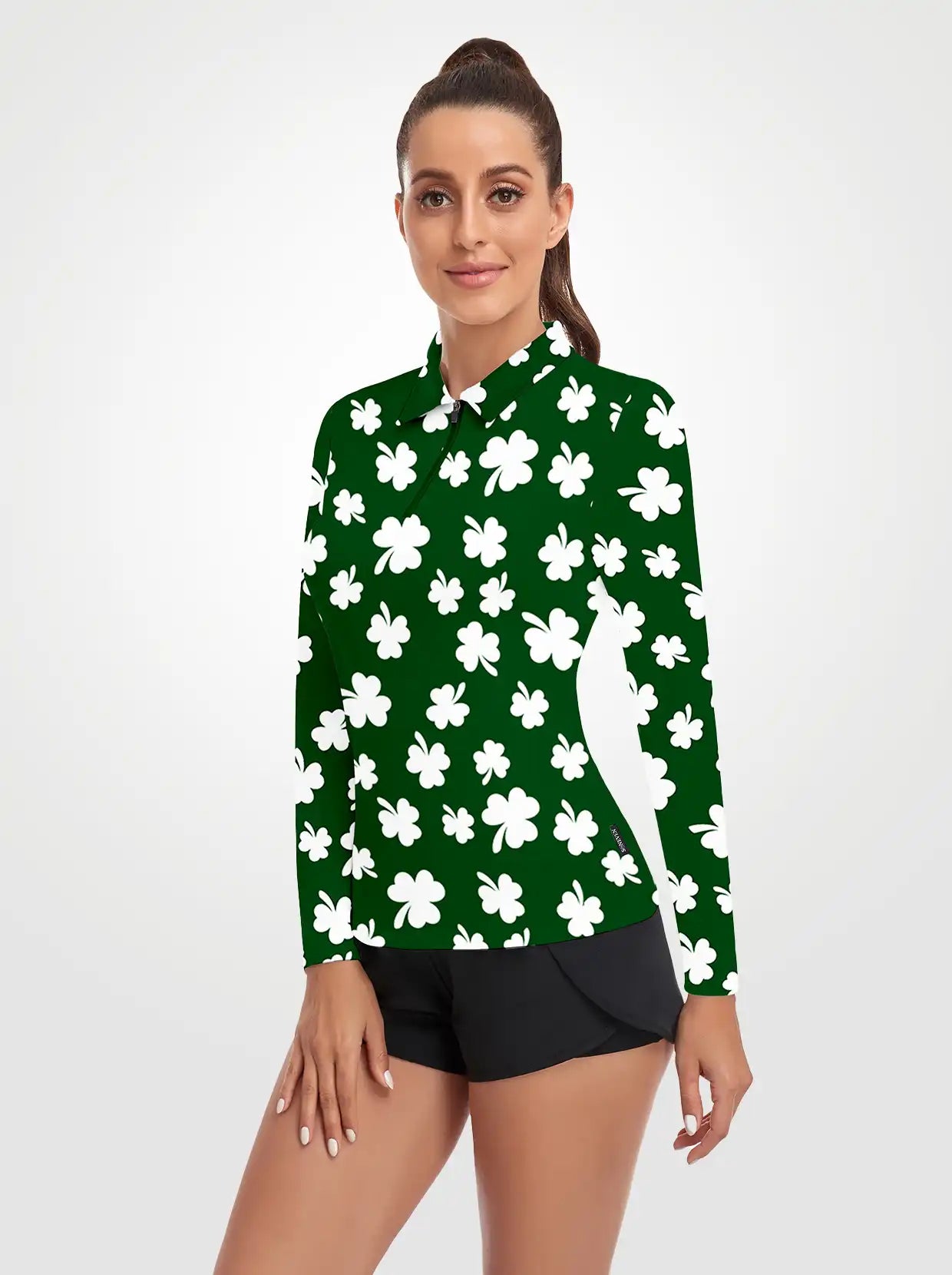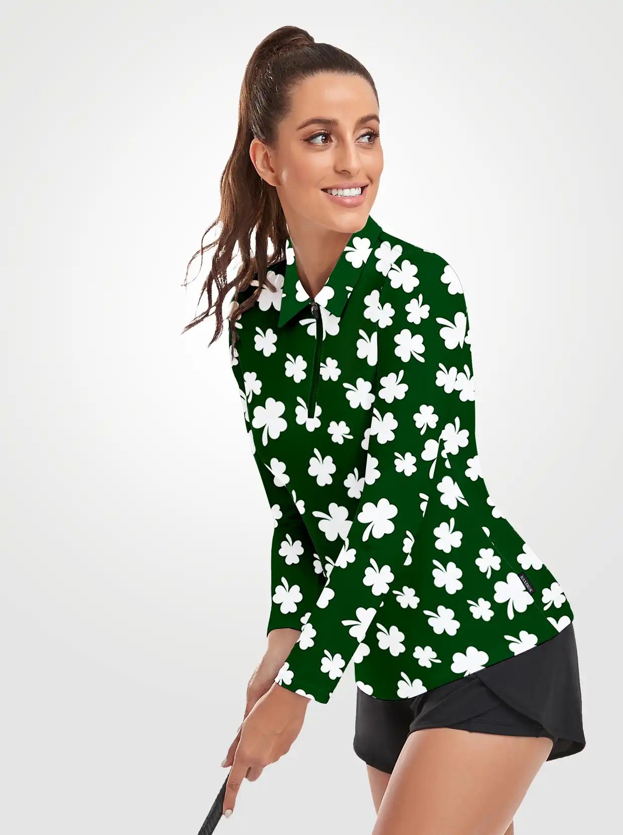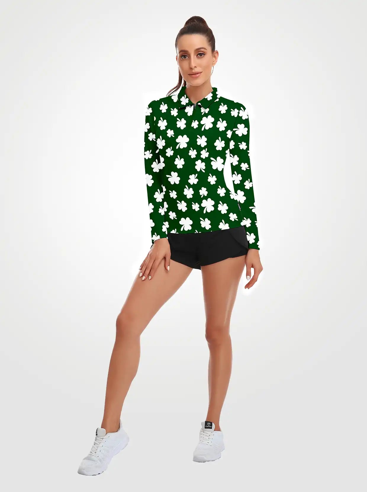 White Shamrock Quarter-zip Long-sleeve Polo Shirt for Women