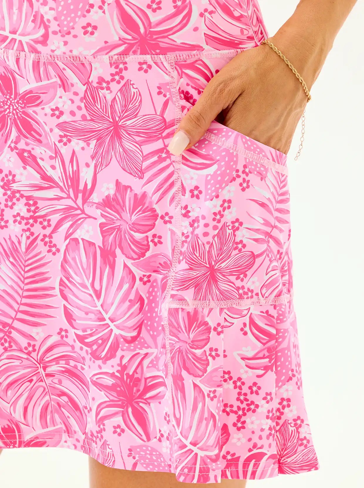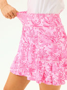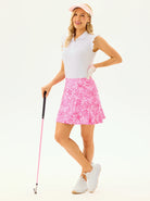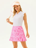 Experience a fresh take on athletic style with our Pink Floral Pleated Skort. Designed with a unique pleated hem and built-in shorts, this piece gives your legs extra room for dynamic movement. The moisture-wicking fabric ensures you stay dry and comfortable during long rallies or sunny rounds of golf.