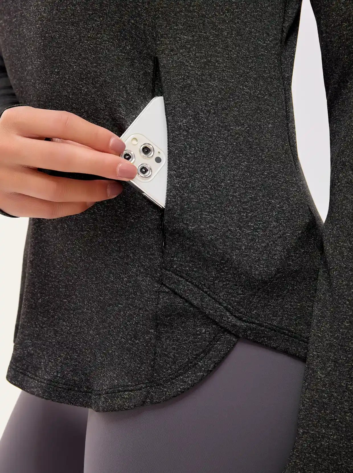 Your new favorite layering piece- our thermal long-sleeve V-neck tops perfectly blend comfort with core function. Feel unrestricted thanks to 4-way stretch fabric that adapts to every move, while moisture-wicking technology keeps you fresh and dry from the first swing to the final errand. Secure your essentials in the zippered pockets and enjoy the flattering coverage of the curved hem. Its lightweight thermal properties deliver warmth without the bulk.