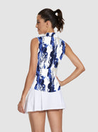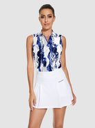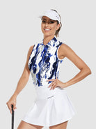 Women's Blue Crack Print Quarter-zip Sleeveless Polo Shirt