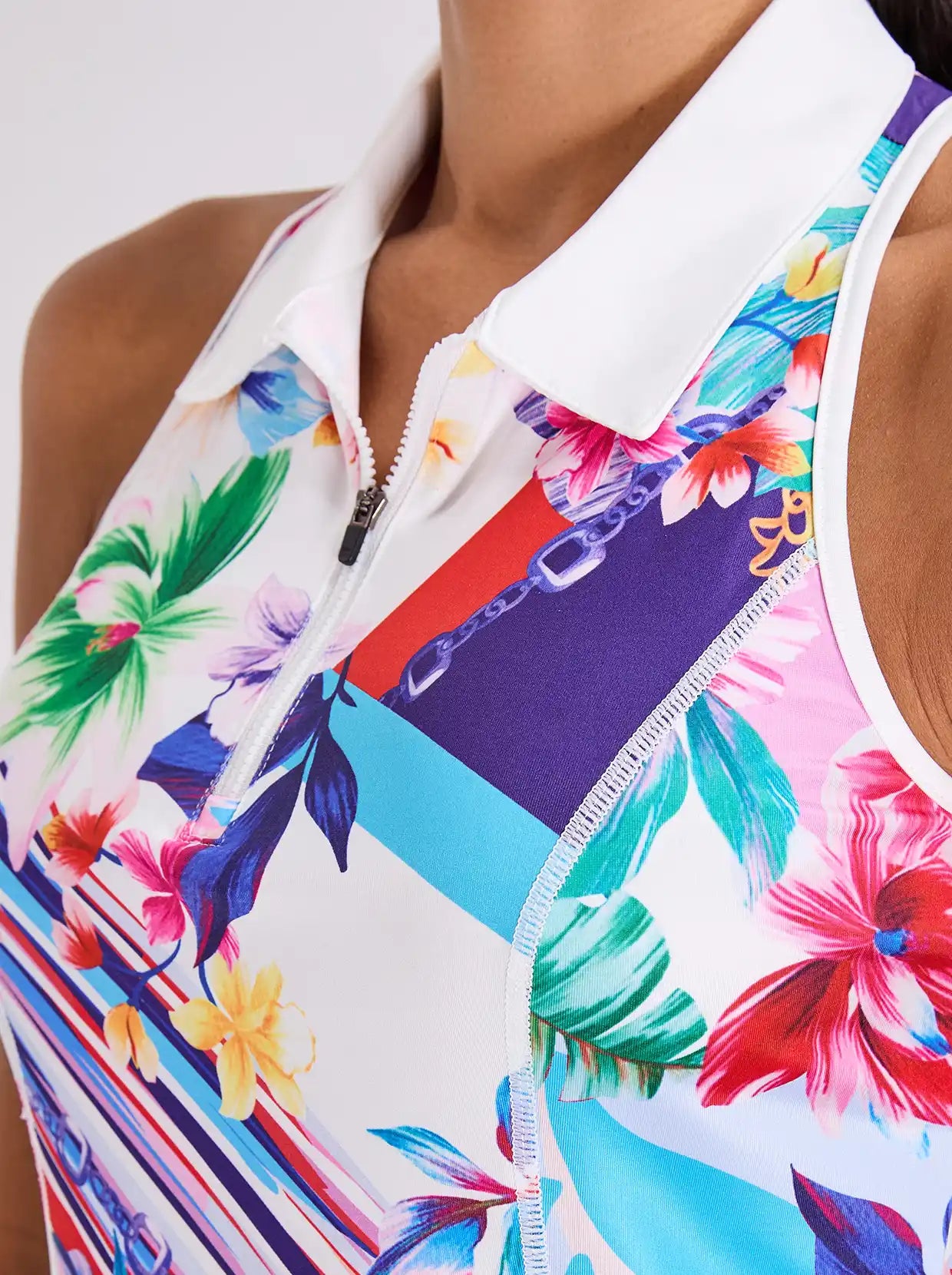 Women's Colorful Floral Quarter-zip Racerback Sleeveless Polo Shirt