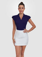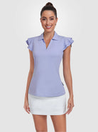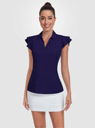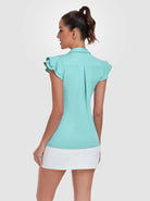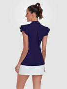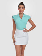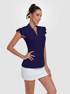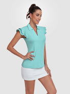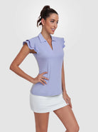 Women's Solid Color V-neck Ruffled Sleeveless Polo Shirt